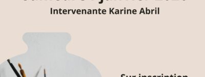 AgendaMusée : Atelier de poterie9 Jan 2022Samedi 31 janvier 2026 Atelier de poterie Intervenante : Karine Abril Thématique : petit vase, jouer avec les formes et les…
