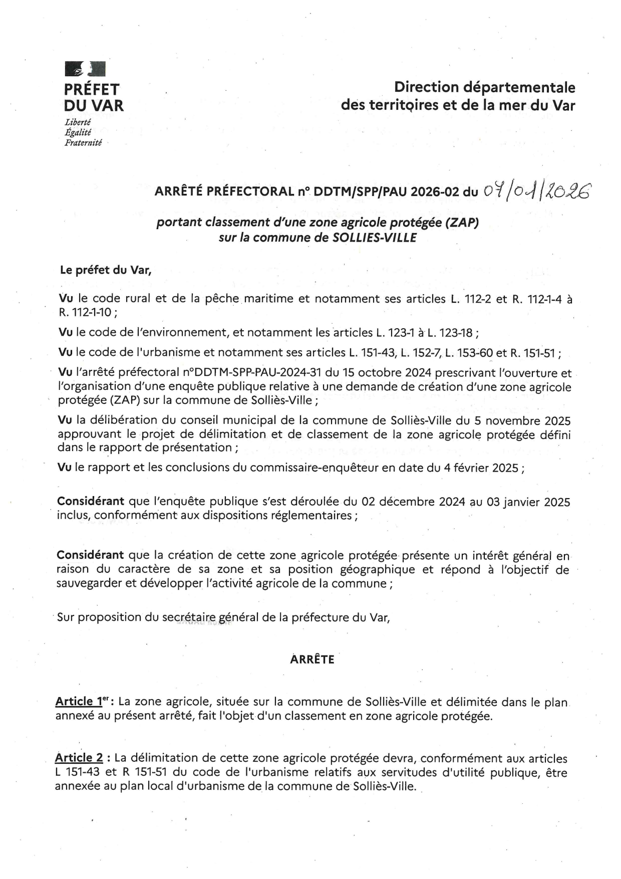 Approbation du périmètre de la Zone Agricole Protégée de la commune