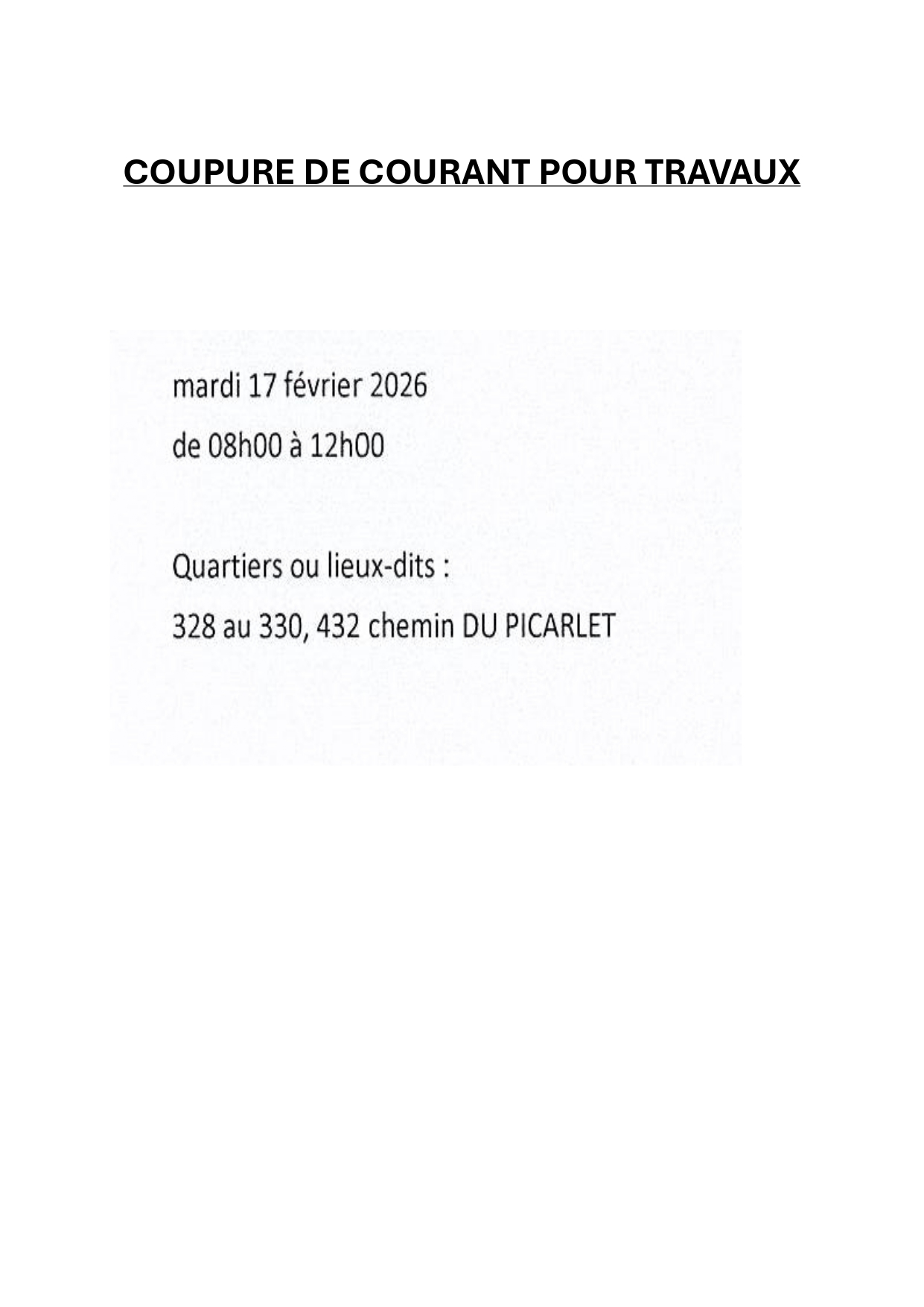 Coupure de courant pour travaux
